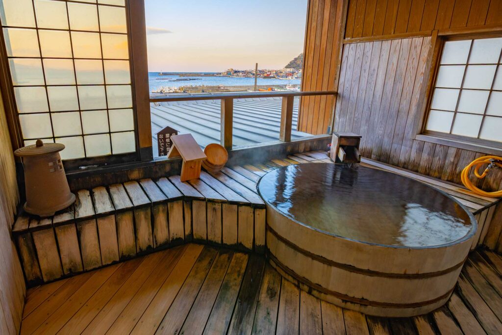 露天風呂付きのお部屋はすべてオーシャンビューとなっており、源泉掛け流しの温泉に入りながら相模湾や熱海の夜景がお楽しみいただけます。